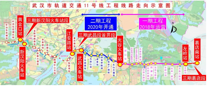 葛店地鐵是武漢市軌道交通11號線三期工程,起于武漢地鐵11號線左嶺站,沿高新大道以地下方式展線,止于葛店南站,長3.7公里。設地下二層島式地鐵車站,與武黃及武岡城際鐵路都可實現(xiàn)換乘,總投資16.33億元,建設工期26個月。項目預留了進一步延伸及與武鄂黃市域鐵路對接的條件,建成后將有力促進光谷與葛店一體化發(fā)展,促進城際軌道與城市軌道網(wǎng)的融合,提升葛店構(gòu)建區(qū)域綜合交通樞紐的能力,推動武鄂協(xié)同發(fā)展。
