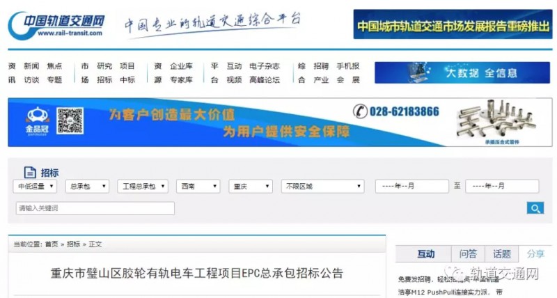 重慶市璧山區膠輪有軌電車工程EPC總承包招標公告