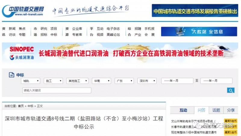2深圳市城市軌道交通8號(hào)線二期(鹽田路站(不含)至小梅沙站)工程中標(biāo)公示