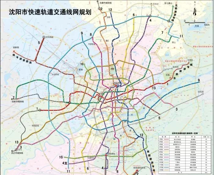 在規(guī)劃中,沈陽市城市軌道交通線網(wǎng)由“七橫、七縱、兩弦線”共計(jì)16條線組成,總長度為630公里,線網(wǎng)呈L放射型。