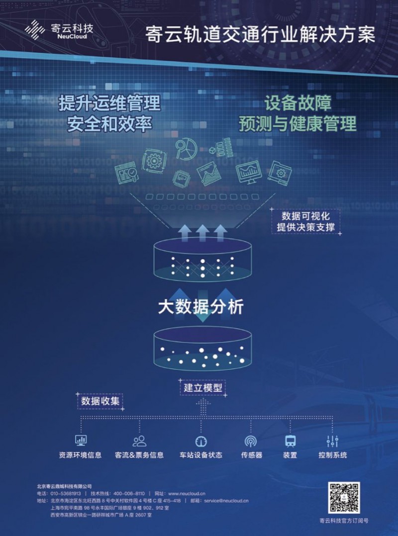 在軌道交通領(lǐng)域,寄云科技多年來一直在探索一條能與行業(yè)相融合的信息化之路,能夠創(chuàng)造性的將工業(yè)設(shè)備、邊緣計算、物聯(lián)網(wǎng)、大數(shù)據(jù)以及云計算等先進技術(shù)緊密結(jié)合在一起,為工業(yè)企業(yè)提供從傳感器數(shù)據(jù)采集、實時數(shù)據(jù)存儲和轉(zhuǎn)換、設(shè)備遠程監(jiān)控和告警,到工業(yè)大數(shù)據(jù)的深度處理和分析等多維度的服務,為客戶提供包括故障診斷、故障分析和預測、可靠性分析、產(chǎn)線優(yōu)化乃至產(chǎn)能提升等全方位的解決方案。