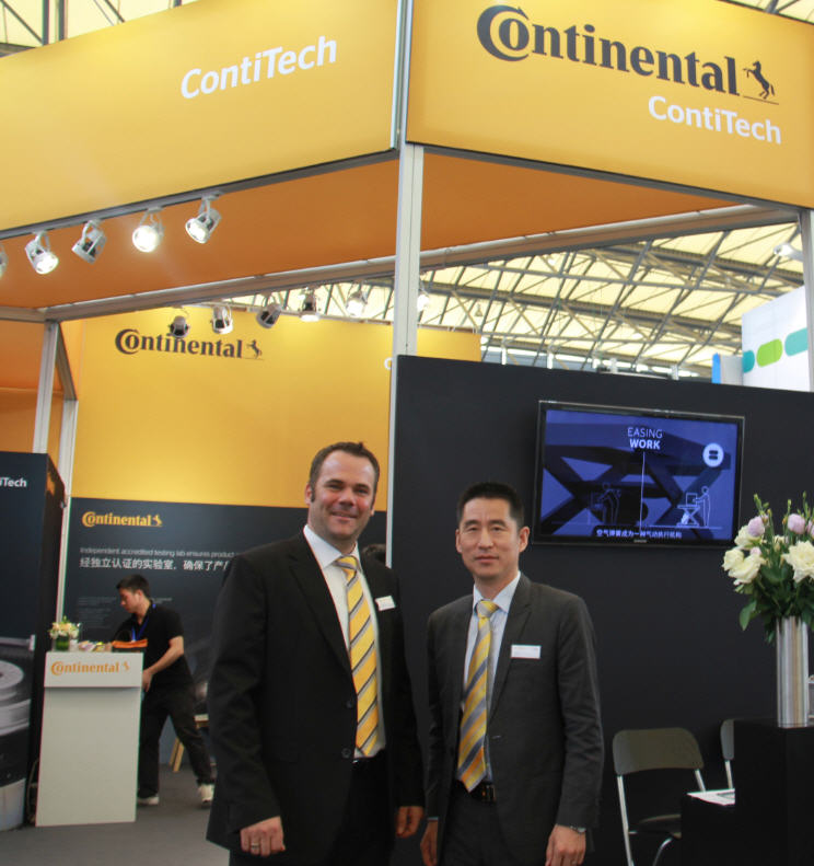 康迪泰克空氣彈簧系統(tǒng)業(yè)務(wù)單元區(qū)總經(jīng)理譚貝克(左)和康迪泰克空氣彈簧系統(tǒng)業(yè)務(wù)單元區(qū)銷(xiāo)售市場(chǎng)總監(jiān)郝建華(右)合影