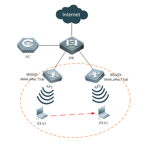 虛擬AP:軌旁AP工作在相同頻率,也發(fā)出相同的BSSID,所有的報文處理和交互,由AC統(tǒng)一協(xié)調(diào)。對于列車AP來說,可以把整網(wǎng)的所有AP看成一個“虛擬的大AP”。