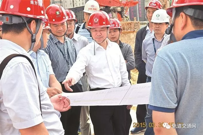 ▲2015年3月30日下午,陳湘生(中)率隊檢查深圳地鐵7號線工地。