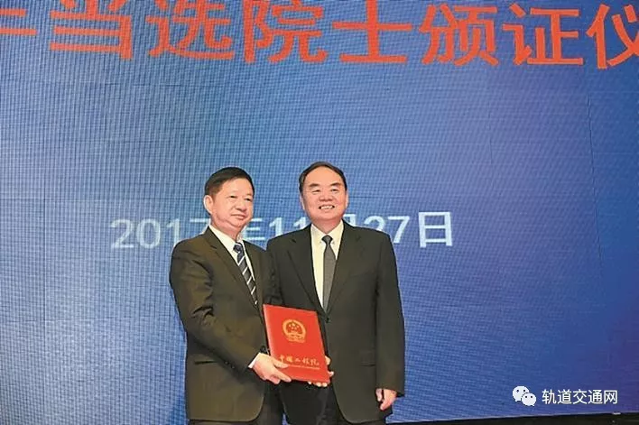 ▲2017年12月1日,時任工程院院長周濟給陳湘生(左一)頒發工程院院士證書。