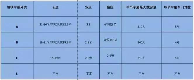 一般而言,世界各地軌道交通車型沒有標準,往往是按照某個地方的地鐵所需量身定制,比如紐約地鐵的A系統和B系統。在我國,城市軌道交通(地鐵、輕軌)車輛類型則往被分為A、B、C三種型號以及L型。