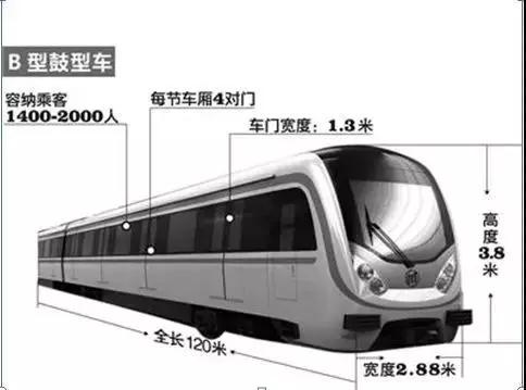 標準B型車車寬2.8米,車體有效長度19.8米,多數為6節編組,少部分4節編組,軸重14t,單向小時最大客運量3-5.5萬。