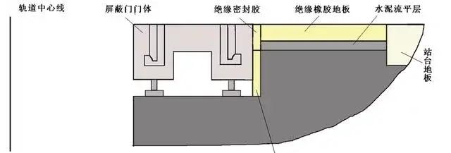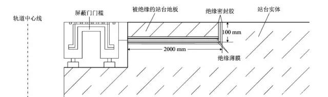 為了避免乘客觸電的危險,將屏蔽門整個下部支撐結構的表面涂上特殊的絕緣材料,同時在屏蔽門前方900mm范圍內鋪設了橡膠地板,達到了雙重絕緣的效果,簡稱橡膠地板方案。還可以在站臺層內敷設絕緣薄膜的方式,形成絕緣帶,也可以達到同樣的效果,簡稱絕緣薄膜方案。