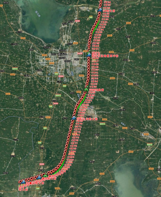 項目北起宿遷宿豫區(qū)與徐州新沂市交界處,經(jīng)由宿城區(qū)、洋河新區(qū)、宿遷經(jīng)濟開發(fā)區(qū),最終至宿遷市泗洪縣與安徽省泗縣交界處,線路全長78km,建設(shè)工期為三年半(42個月),總體走向如下圖所示。
