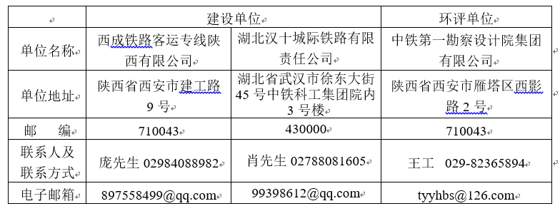 我公司已委托中鐵第一勘察設計院集團有限公司編制完成《新建鐵路西安至十堰線環境影響報告書》和《新建鐵路西安至十堰線環境影響評價公眾參與說明》,根據《中華人民共和國環境影響評價法》、《環境影響評價公眾參與辦法》的有關規定,為進一步推進環境影響評價公眾參與工作,現向公眾公示環境影響報告書全文和公眾參與說明。