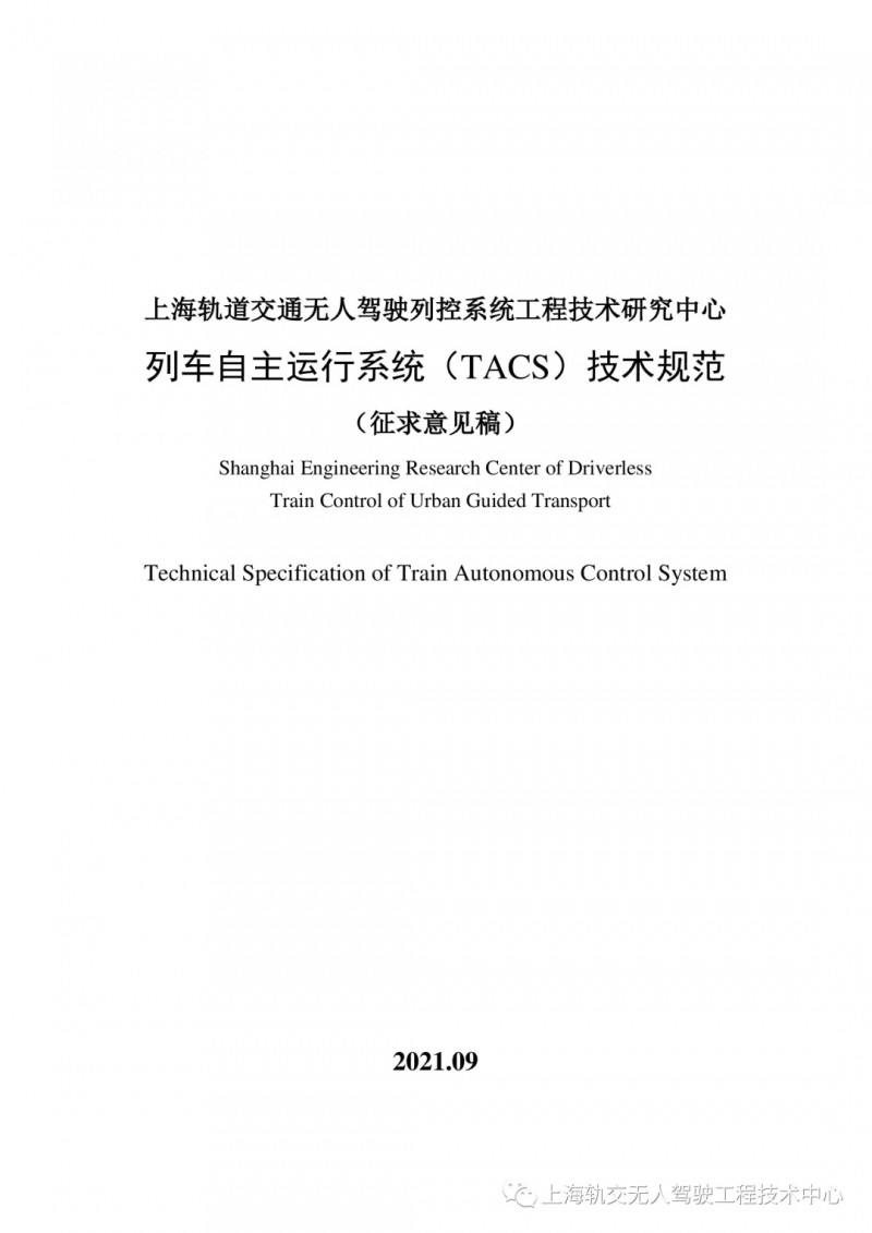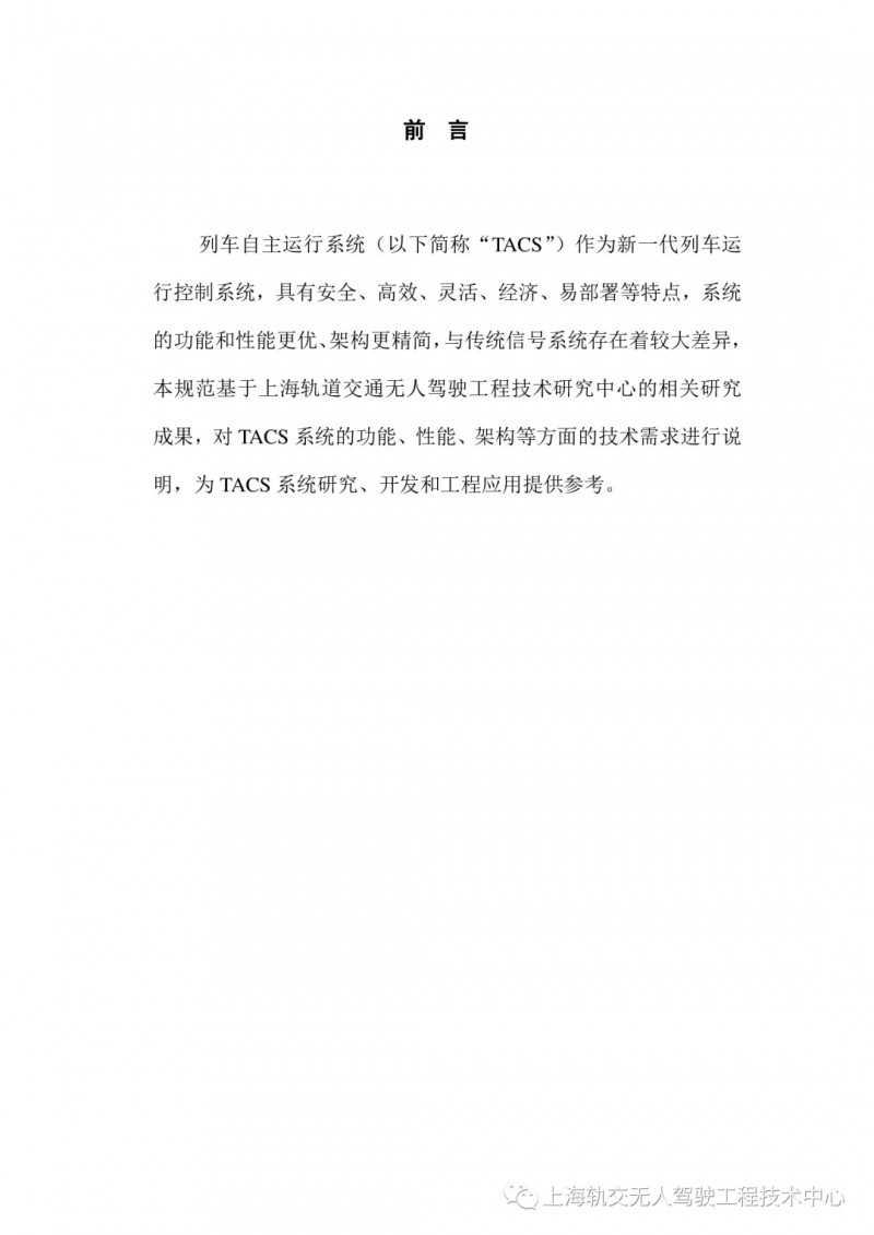 列車自主運行系統(TACS)作為新一代列車運行控制系統,具有安全、高效、靈活、經濟、易部署等特點,系統的功能和性能更優、架構更精簡。針對與傳統信號系統存在的差異,上海軌道交通無人駕駛列控系統工程技術研究中心基于相關研究成果,編制了《列車自主運行系統(TACS)技術規范》(征求意見稿),對TACS系統的功能、性能、架構等方面的技術需求進行說明,為TACS系統研究、開發和工程應用提供參考。