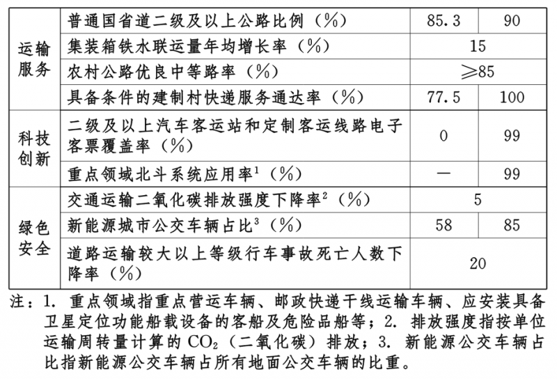 綠色安全成效向全國前列進位。運輸結構持續優化,鐵路、水運貨運量在全社會貨運中的占比明顯提升;交通運輸領域綠色生產生活方式逐步形成,資源要素節約集約利用水平持續提高,碳排放強度下降率達到5%。交通運輸安全發展的防、管、控能力明顯提高,安全保障體系不斷完善,安全生產事故發生率進一步降低。