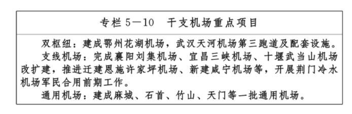 按照“雙樞引領、支線協同”的發展思路,建設“雙樞紐、多支線”航空運輸網。實施民航補短板工程,重點推進鄂州花湖機場建設,打造國內一流專業航空貨運樞紐、全球主要航空物流節點;加快推進武漢天河機場提升改造,增強機場門戶樞紐功能,打造民航客貨運門戶“雙樞紐”。積極推進改擴建和新建一批支線機場,規劃建設一批產業基礎好、市場需求旺盛的通用機場,完善運輸機場通航功能,推進通航服務市州廣覆蓋,推動形成布局合理、功能完善、層次分明的現代化機場體系,滿足各地產業經濟發展和公共服務的需要。
