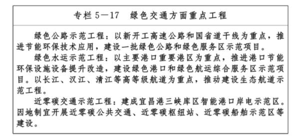 積極推進新能源、清潔能源車船推廣應用,積極推動城市公交和城市物流配送車輛電動化發展。嚴格落實汽車排放檢驗與維護制度,加快老舊營運柴油貨車淘汰更新,禁止不滿足國家機動車油耗和排放標準限值的新車型進入道路運輸市場。支持高速公路服務區、站場等區域充電設施建設。推進碼頭岸電設施和船舶受電設施改造,開展岸電應用示范區建設。加強船舶污染防治,提升港口污染治理水平,加強港口節能環保設備、工藝應用。加強交通生產水污染、大氣污染處理技術應用,加強高速公路沿線噪聲隔離措施,妥善處理大型機場噪聲影響。實施綠色出行行動,在有條件地區開展交通近零碳示范行動。