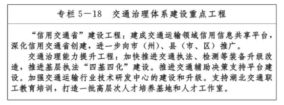 6.交通治理能力再上新臺階。綜合交通運輸體制機制進一步完善,成立省綜合交通運輸工作領導小組、省綜合交通安全生產專業委員會,“六個一”活動(安全督查、統計、宣傳、職工文體、人才培訓、精神文明)整體推進;省重大項目建設指揮部統籌協調作用充分發揮,一批標志性交通工程相繼落地;平穩順利完成6個高速公路管理處人員劃轉移交。營商環境持續優化,下放、取消了一批省級職權事項,所有省級審批事項并入省政務服務“一張網”,“春風行動”“亮劍行動”成果豐碩。綜合交通規劃工作成效明顯,印發《湖北長江經濟帶綜合立體綠色交通走廊建設專項規劃》等一系列規劃,一批重大交通項目獲得國家規劃支持。修訂《湖北省水路交通條例》等地方法規規章,出臺《湖北省農村公路工程技術標準》等地方標準,行業治理體系配套完善。大交通文明創建深入推進,涌現出鄧艾民、王光國等一批先進模范人物和先進集體,全國第一部反映“四好農村路”建設成就的電影《村路彎彎》榮獲首屆湖北電影金鶴獎。