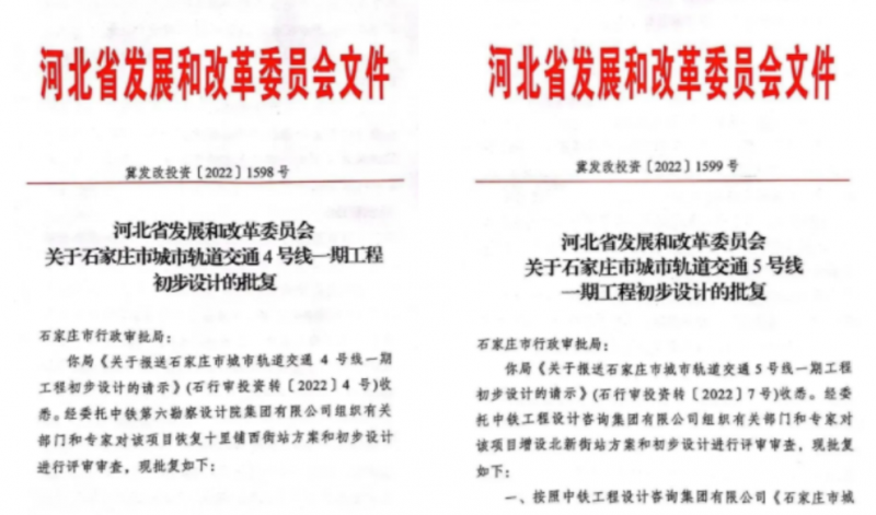 12月23日,石家莊市軌道交通4、5號線一期工程初步設計分別獲河北省發改委批復,意味著石家莊市軌道交通二期規劃建設取得又一里程碑式進展。4號線一期工程起自玉村南路站,終到東垣東路站。線路全長約22.43公里,設站20座,其中換乘站6座,平均站間距約1.16公里。5號線一期工程起自宮北路站,終至談固北大街站。線路全長約19.9公里,設站19座,其中換乘站6座,平均站間距約1.07公里。兩條線路的開工建設指日可待。