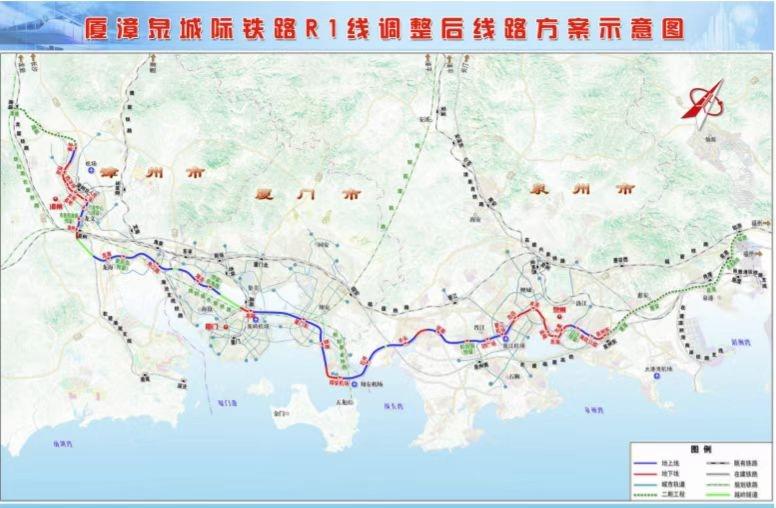 廈漳泉城際鐵路R1線調(diào)整后線路方案示意圖(最終方案以批復(fù)的為準)