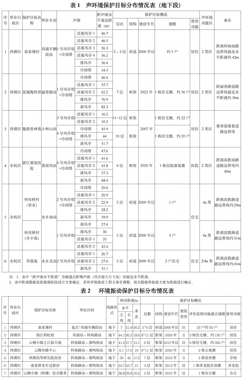 (2)聲環境影響概述:地下車站風亭、冷卻塔噪聲等環控設備噪聲影響周邊環境敏感目標。