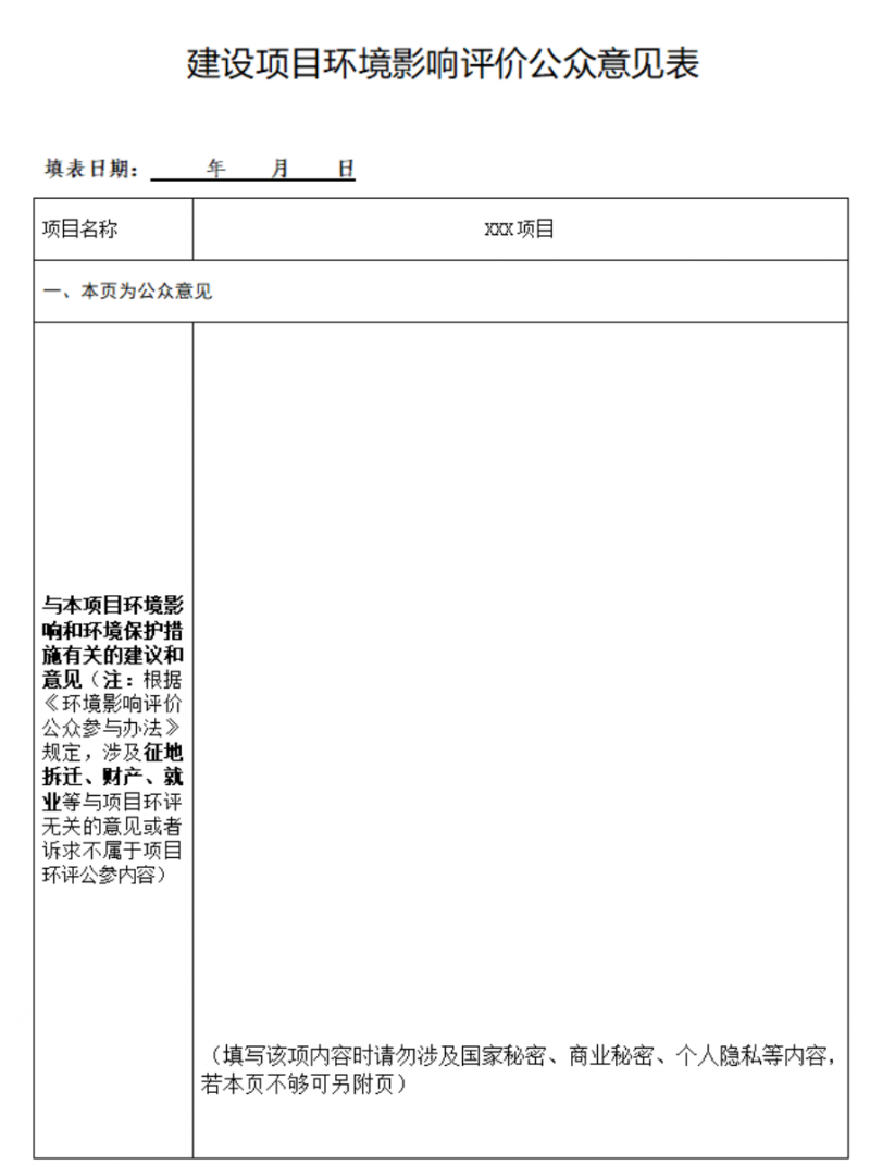 公眾可以通過信函、傳真、電子郵件、郵寄的方式,在規(guī)定時(shí)間內(nèi)將填寫的公眾意見表提交給建設(shè)單位,反映與建設(shè)項(xiàng)目環(huán)境影響有關(guān)的意見和建議;