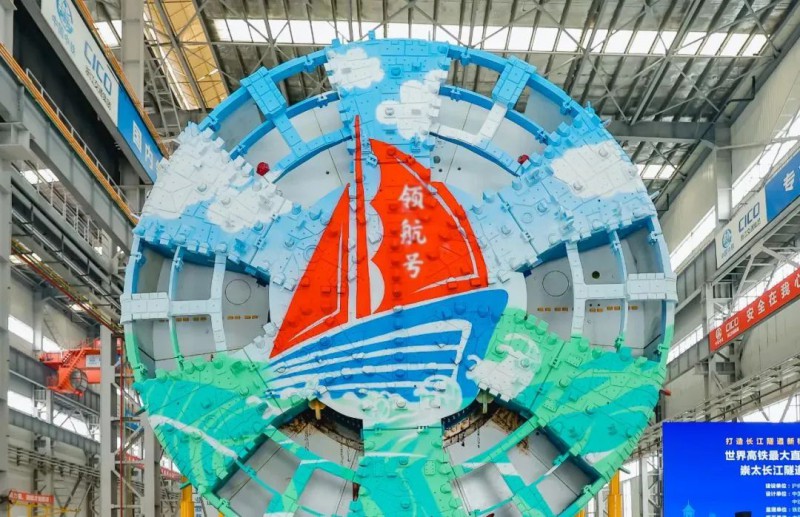 “領航號”盾構機刀盤直徑15.4米,主機長約15.8米,總長約128米,主機重約2600噸,是世界獨頭掘進距離最長(11.325千米)、直徑最大(15.4米)、穿越長江水下最深(89米)的高鐵隧道盾構機,搭載智能掘進、智能拼裝、超前地質預報、盾尾密封安全預警、設備狀態在線監測等國內領先的智能化系統,可實現隧道智能建造、設備狀態可感可知,標志著我國盾構隧道智能建造水平達到新的高度。“領航號”盾構機由中鐵隧道局、中鐵工程裝備集團聯合研制。