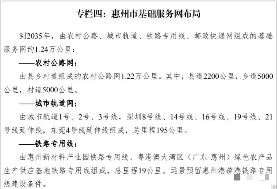 2023年8月2日,惠州市人民政府關于印發惠州市綜合立體交通網規劃(2022-2035年)的通知正式發布。規劃中多處提到關于與深圳地鐵、城際聯網的相關信息。