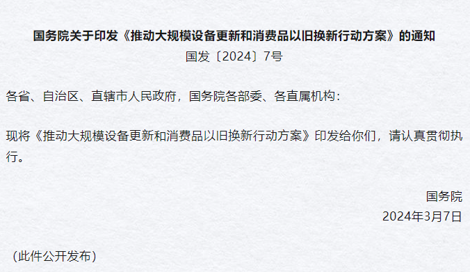 推動大規(guī)模設(shè)備更新和消費品以舊換新行動方案