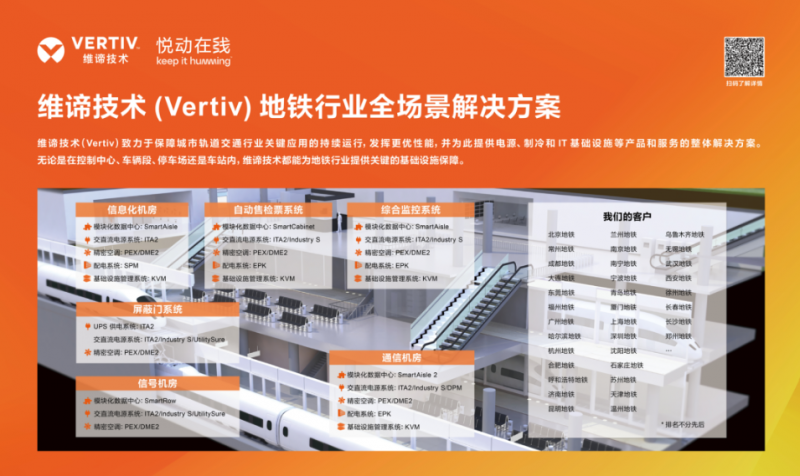 作為軌道交通行業信息化&電氣基礎設施供應商,維諦技術(Vertiv)能夠提供豐富的產品及解決方案,實現對軌道交通業務場景的全覆蓋。