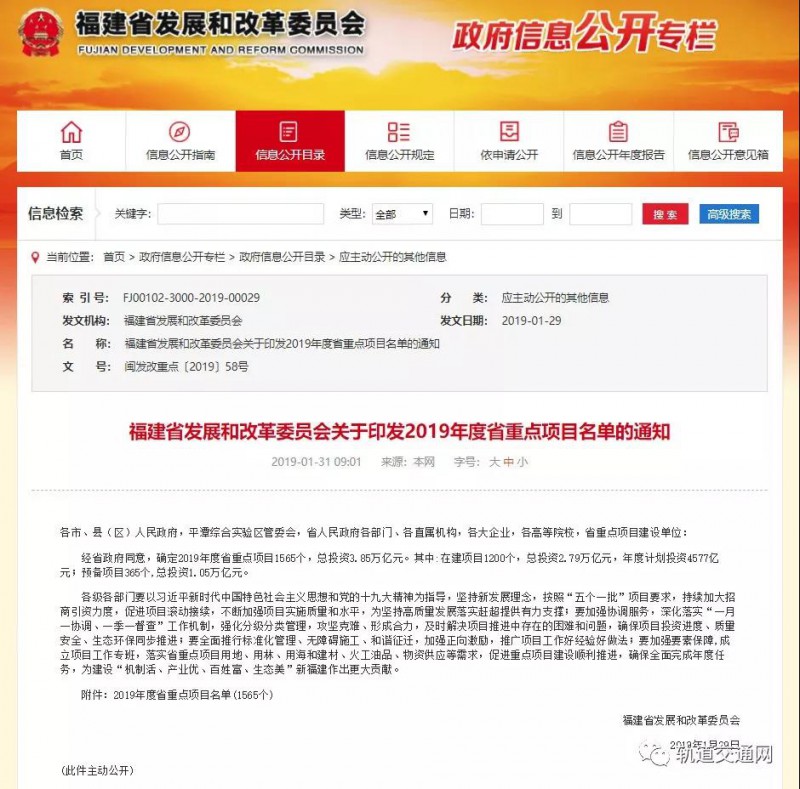 近日,福建省發展和改革委員會印發2019年度福建省重點建設項目名單。確定2019年度省重點項目1565個,總投資3.85萬億元。其中:在建項目1200個,總投資2.79萬億元,年度計劃投資4577億元;預備項目365個,總投資1.05萬億元。