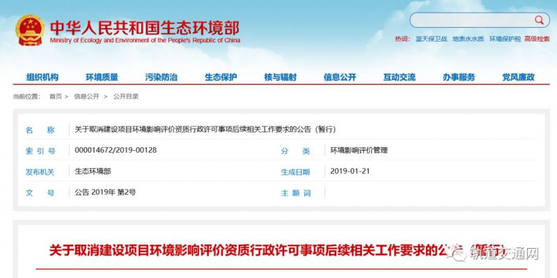 一、自本公告發布之日起,《建設項目環境影響評價資質管理辦法》(環境保護部令第36號,以下簡稱36號令)停止執行;《關于發布〈建設項目環境影響評價資質管理辦法〉配套文件的公告》(環境保護部公告2015年第67號)即行廢止。自2018年12月29日起,我部已不再受理建設項目環境影響評價資質申請,已受理但尚未完成審查的申請事項不再繼續審查;我部環境影響評價工程師從業情況信息管理系統已不再接收申報材料,已接收申報材料但尚未核發登記編號的,不再核發。