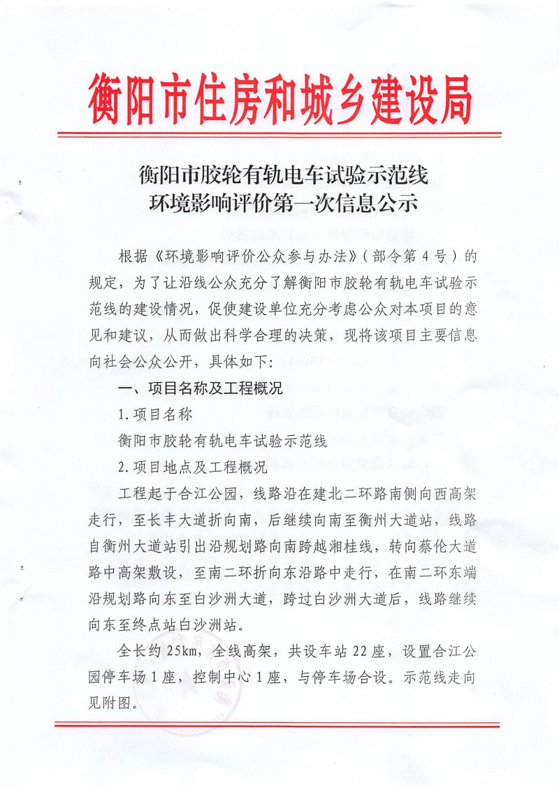 衡陽市膠輪有軌電車試驗示范線環(huán)境影響評價第一次信息公示