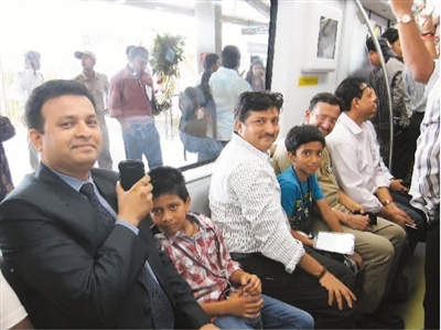 印度居民乘坐由中車生產的孟買地鐵一號線列車。