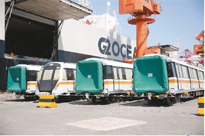 今年5月20日,中車四方股份公司出口新加坡的無人駕駛地鐵車輛在山東青島港裝船發運。
