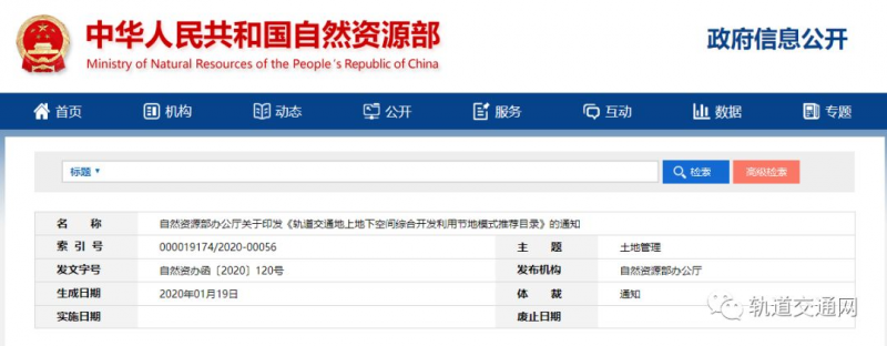 自然資源部辦公廳關于印發《軌道交通地上地下空間綜合開發利用節地模式推薦目錄》的通知