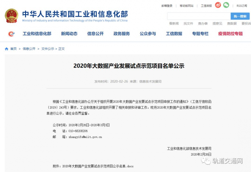 2020年大數據產業發展試點示范項目公示名單(軌交領域)