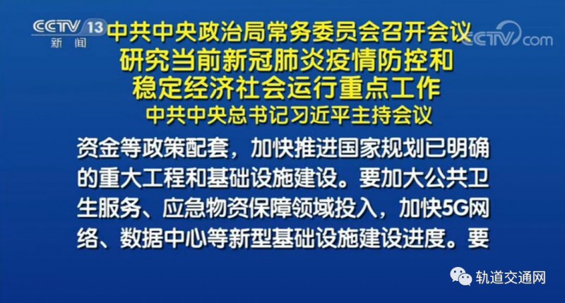3月4日,中共中央政治局常務委員會召開會議,會議強調,要選好投資項目,加強用地、用能、資金等政策配套,加快推進國家規劃已明確的重大工程和基礎設施建設。要加大公共衛生服務、應急物資保障領域投入,加快5G網絡、數據中心等新型基礎設施建設進度。要注重調動民間投資積極性。