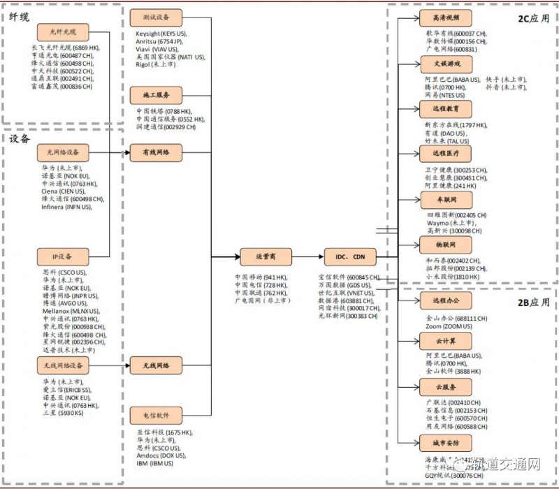 圖表:5G產業鏈關鍵公司圖譜資料來源:中金公司研究部