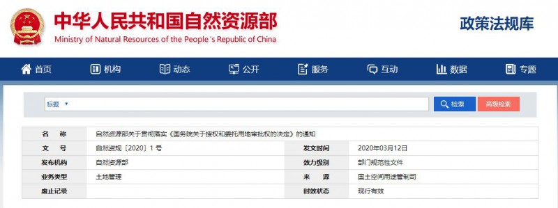 自然資源部關(guān)于貫徹落實(shí)《國(guó)務(wù)院關(guān)于授權(quán)和委托用地審批權(quán)的決定》的通知