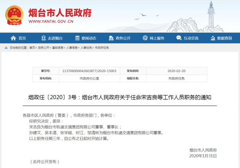 煙臺(tái)市政府官網(wǎng)發(fā)布煙政任〔2020〕3號(hào)文件