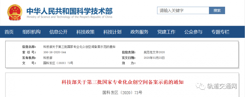 科技部關于第三批國家專業化眾創空間備案示范的通知