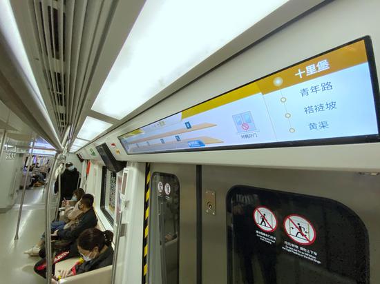 車門上方新增4K高清屏幕,乘客可以獲取下一站換乘路線、出口位置分布、前后車廂的擁擠度等信息。