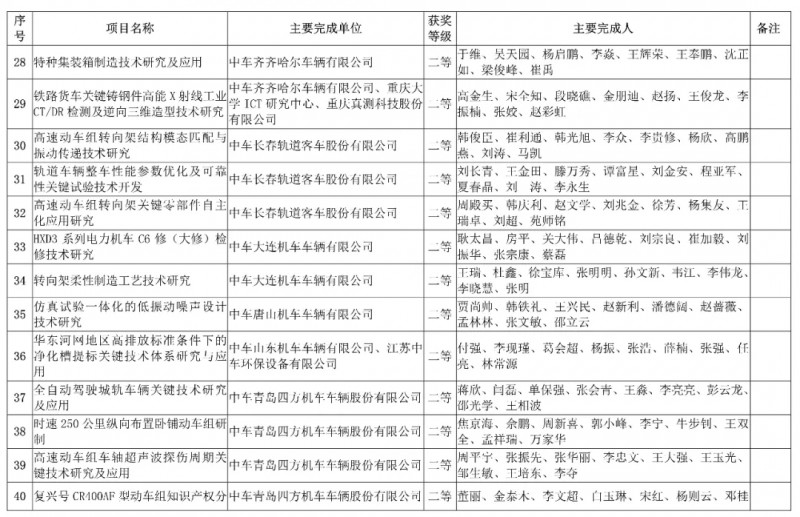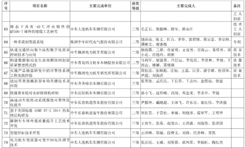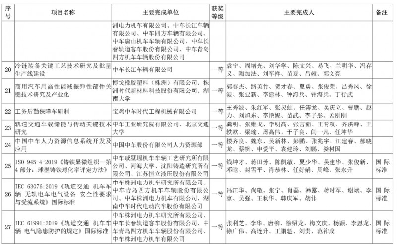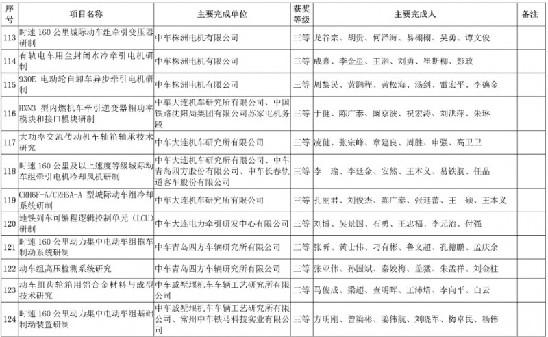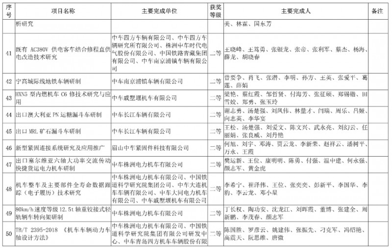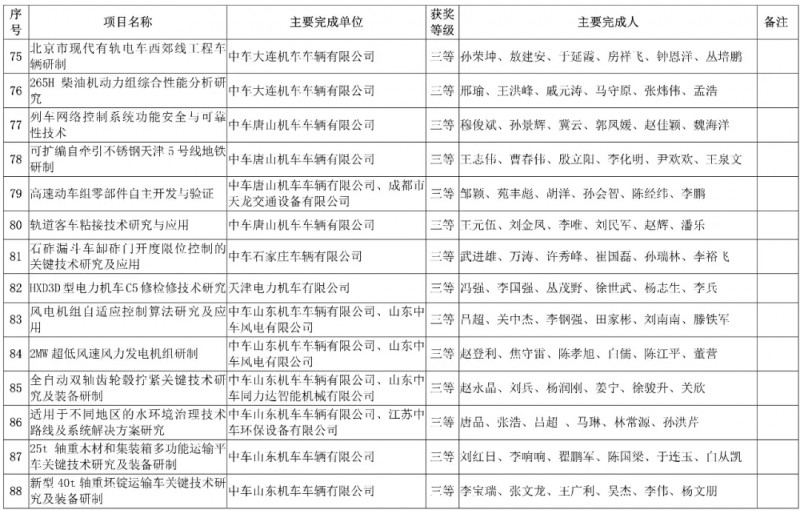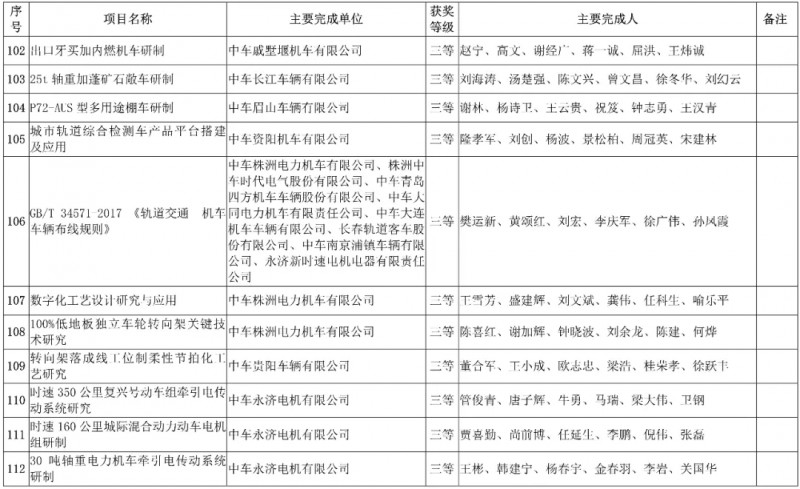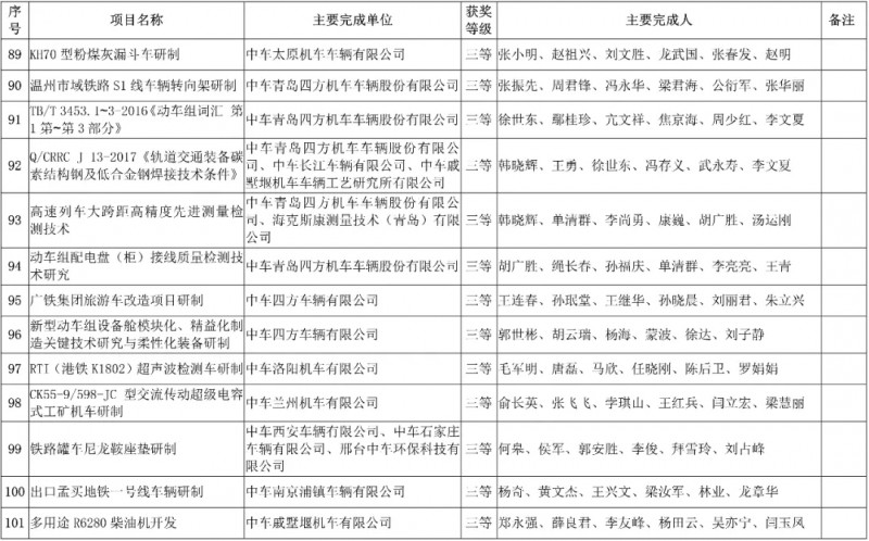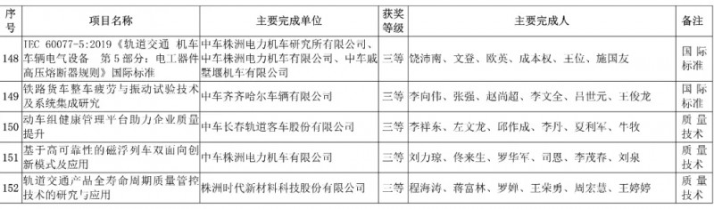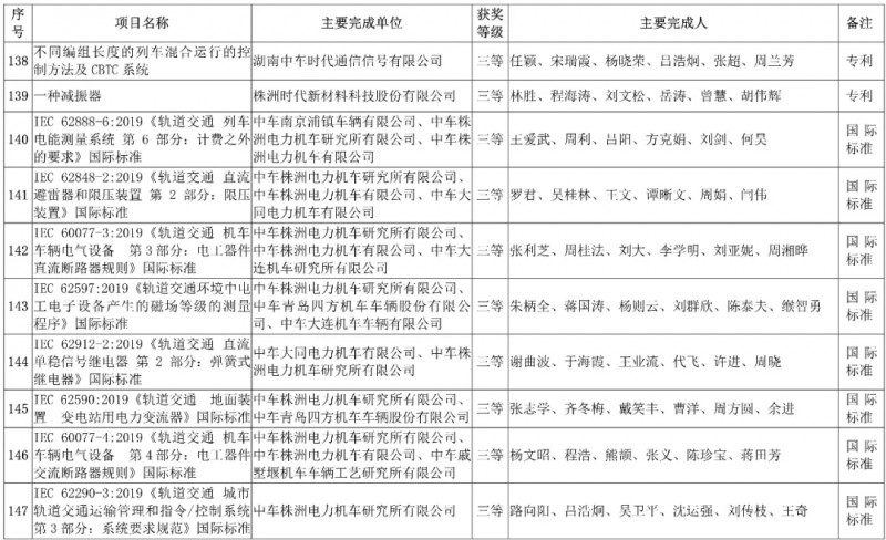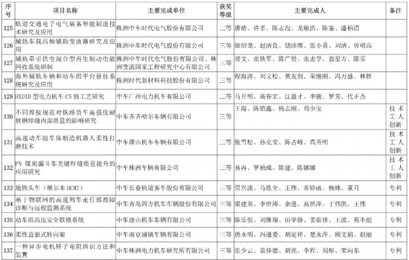 中國中車集團有限公司,授予3項科技成果“2019年度中國中車集團有限公司科學技術獎”,其中一等獎1項、二等獎1項、三等獎1項。