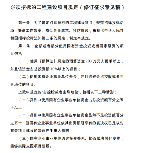 附件:必須招標的工程建設項目規定(修訂征求意見稿)