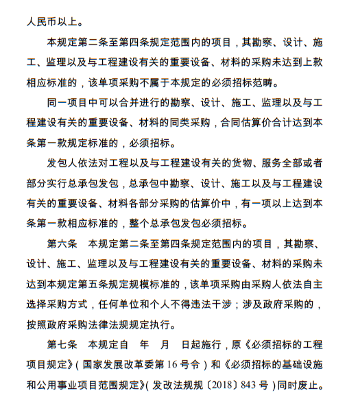 剛剛,國家發改委發布《必須招標的工程建設項目規定》(修訂征求意見稿),對2018版規定進行補充修改。