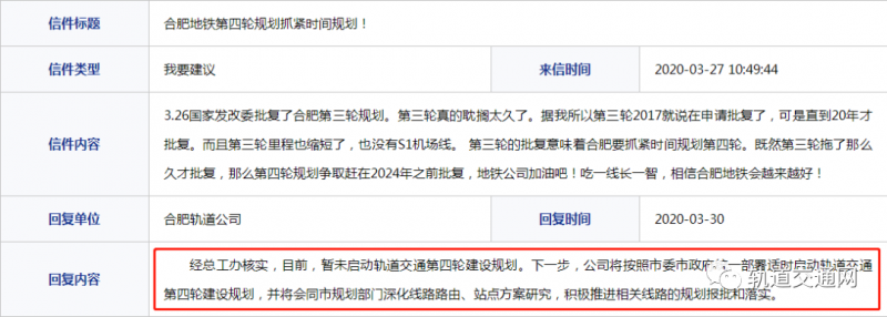 曾有市民3月份在12345信箱中咨詢地鐵第四輪規劃相關事宜。