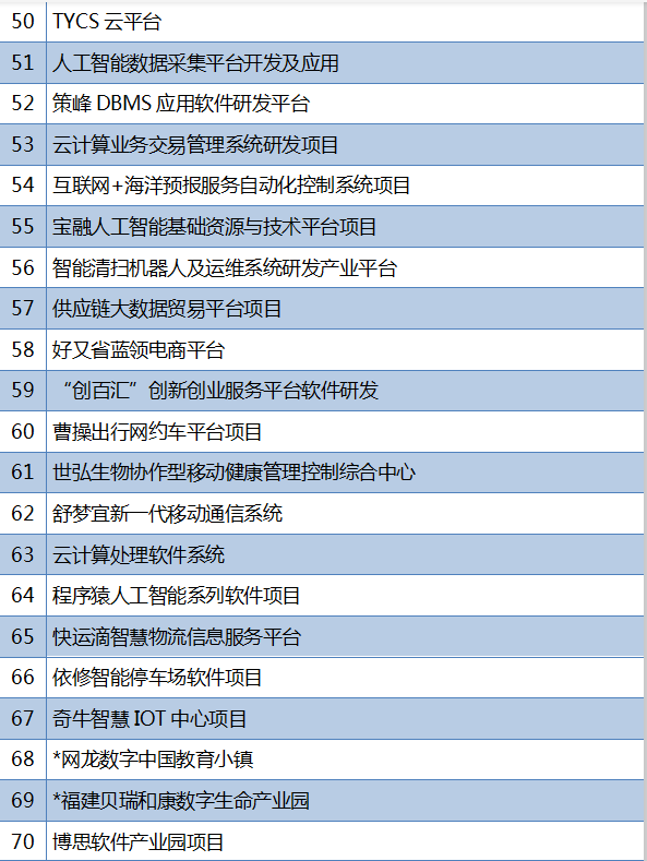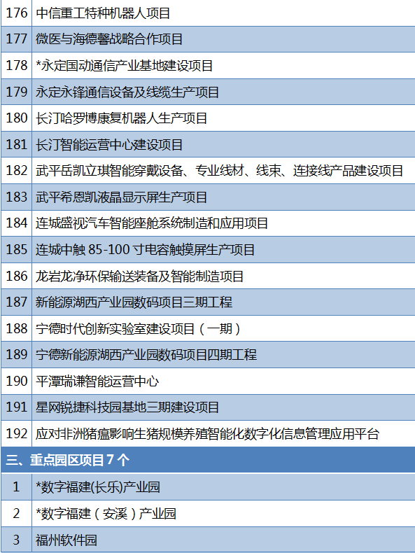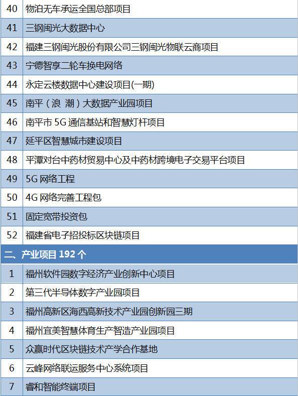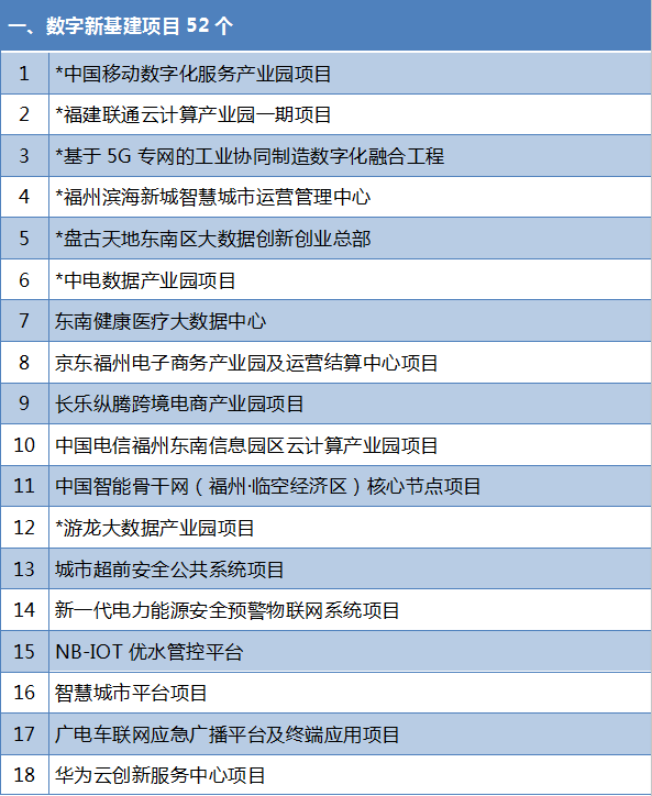 為深入貫徹落實黨中央、國務院和福建省委、省政府關于統籌做好新冠肺炎疫情防控和經濟社會發展的決策部署,充分發揮投資增長對經濟平穩運行的關鍵支撐作用,充分發揮信息化和數字經濟的驅動引領作用,高起點推進國家數字經濟創新發展試驗區建設,經福建省政府同意,4月17日福建省數字辦公布了2020年度省數字經濟重點項目名單,確定251個數字經濟重點建設項目,總投資5878億元,2020年度計劃投資1084億元。其中,數字新基建項目52個,總投資729億元,年度計劃投資286億元;產業項目192個,總投資4425億元,年度計劃投資687億元;重點園區項目7個,總投資724億元,年度計劃投資111億元。