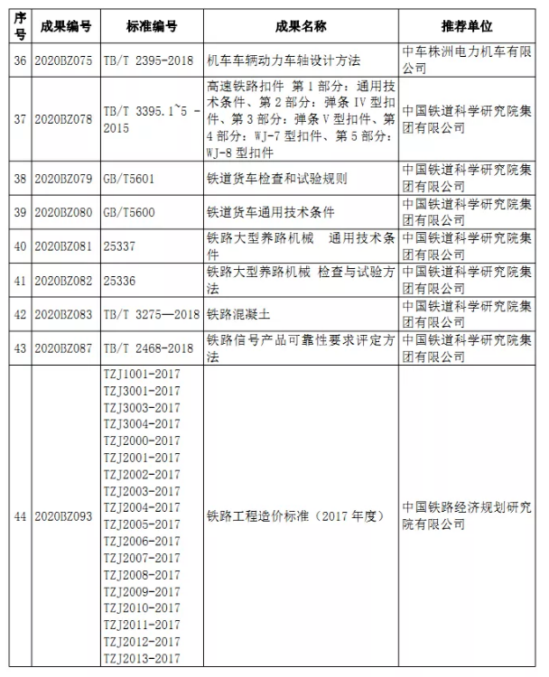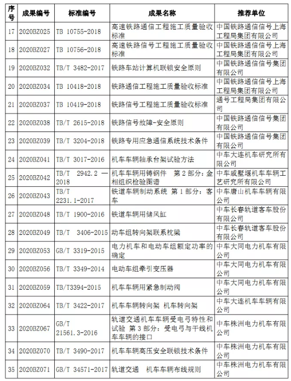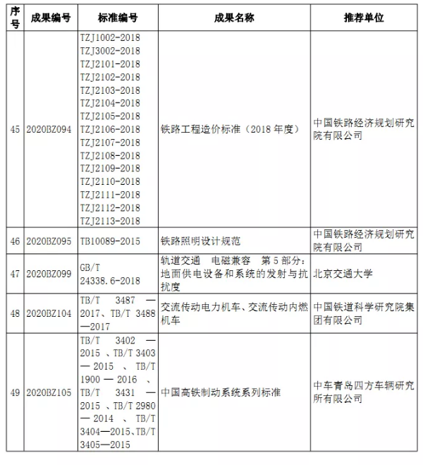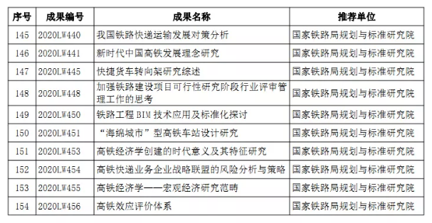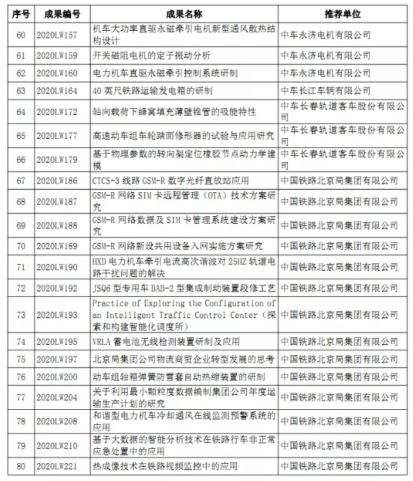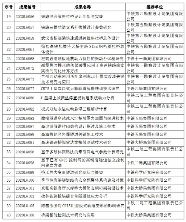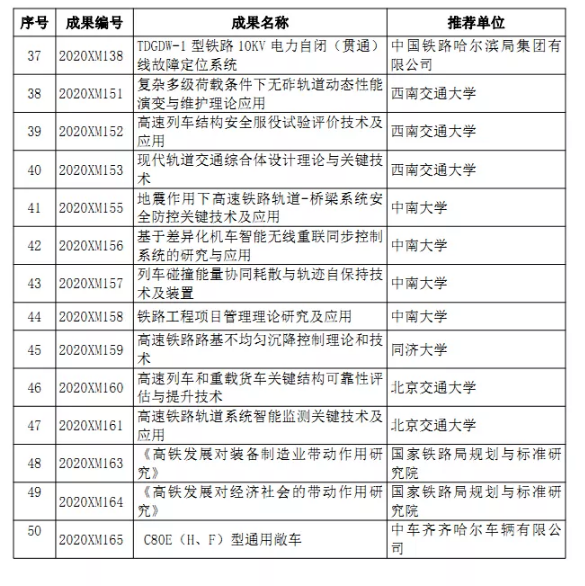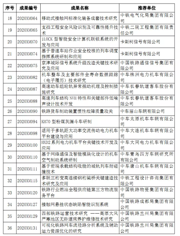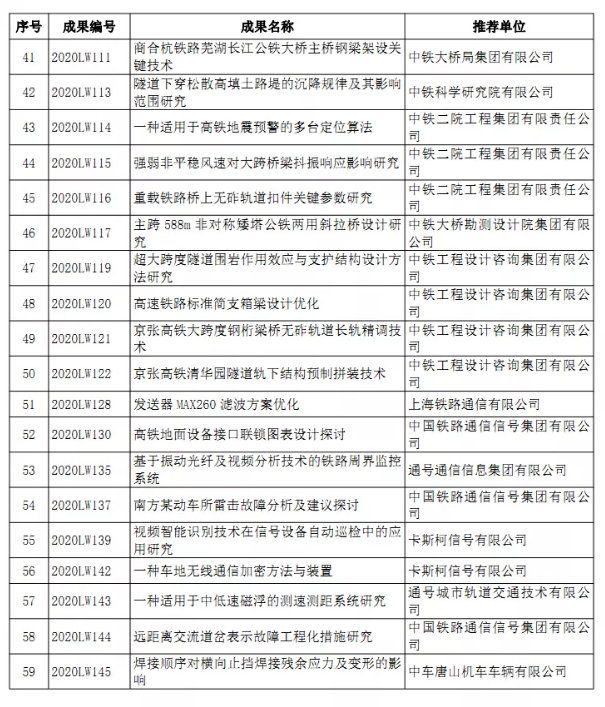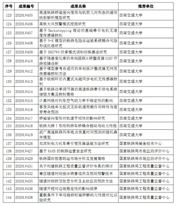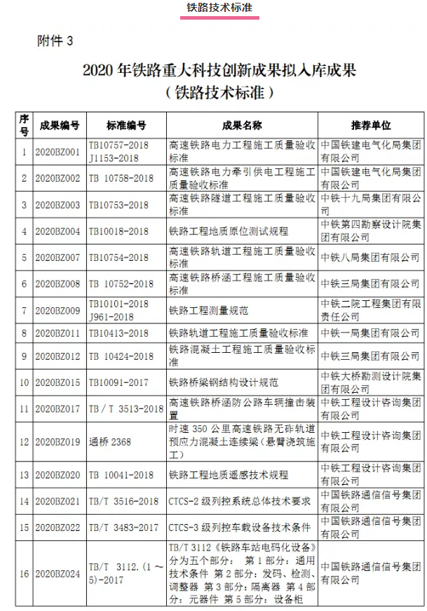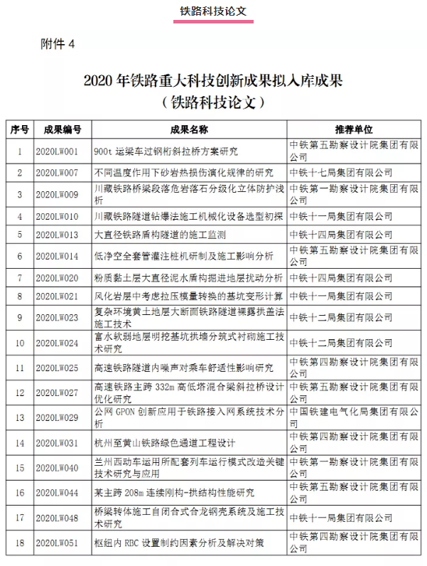 2020年鐵路重大科技創新成果擬入庫成果一覽(項目/專利/標準/論文)