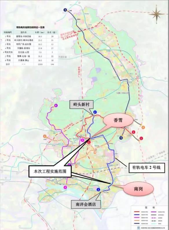 本次即將動(dòng)工的是黃埔區(qū)有軌電車2號(hào)線香雪~南崗段,路線起于香雪大道與開蘿大道交匯路口東側(cè)的地鐵6號(hào)線香雪站,主要沿香雪大道、玉巖路、云峰路、玉云路、云埔三路、KE-NE路、埔北路、開創(chuàng)大道、黃埔東路敷設(shè),止于南崗路與黃埔東路交匯路口東側(cè)的地鐵13號(hào)線南崗站。線路全長(zhǎng)約14.4公里,設(shè)元崗車輛段和劉村停車場(chǎng),調(diào)度指揮中心與 有軌電車一號(hào)線共享。