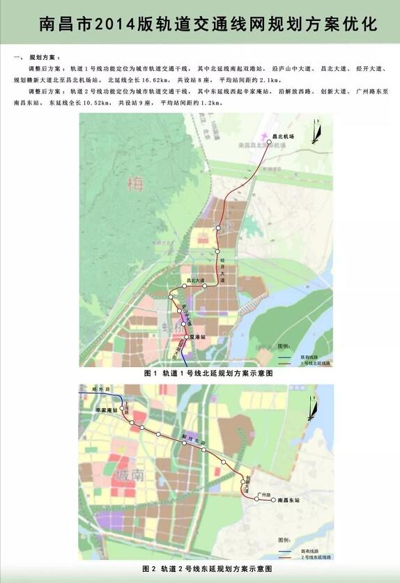 近日,南昌市自然資源局顯示,《南昌市2014版軌道交通線網規劃方案優化》正在進行批后公示,南昌地鐵1號線北延至昌北機場,地鐵2號線東延至南昌東站。