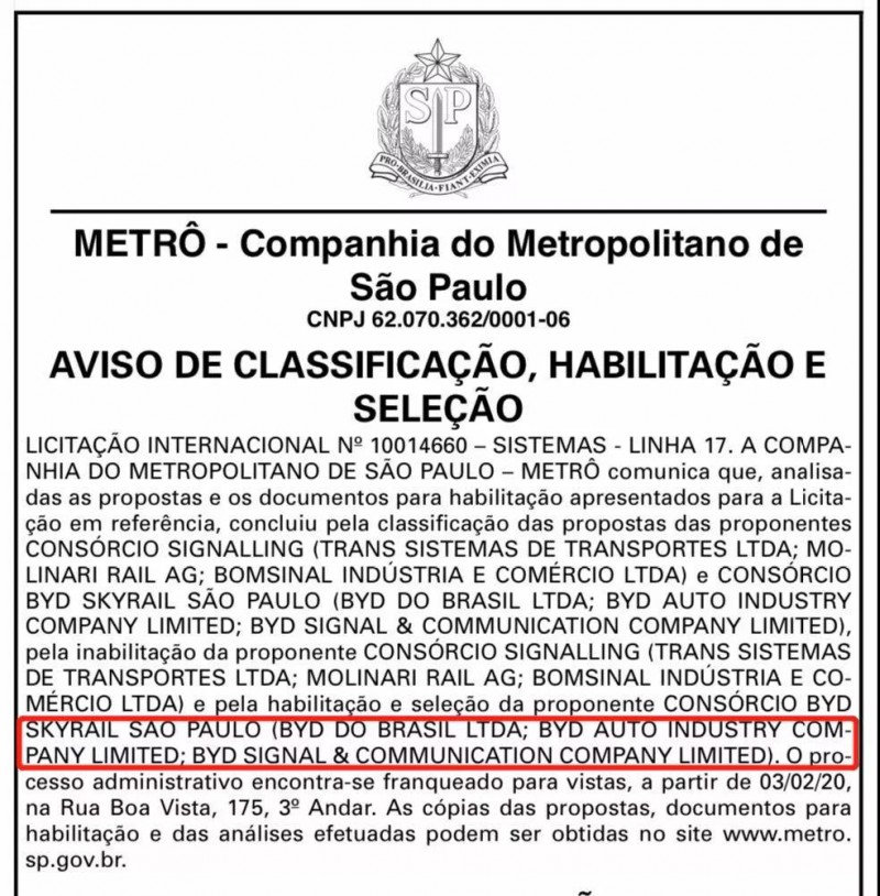 繼巴西薩爾瓦多云軌線整體設計方案獲批,項目即將正式開工的消息公布1個月后,當地時間2020年2月1日,比亞迪又成功拿下巴西圣保羅市軌道交通17號線項目。