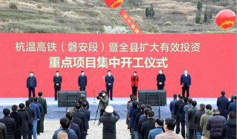 3月8日下午,杭溫高鐵(磐安段)暨全縣擴(kuò)大有效投資重點(diǎn)項(xiàng)目集中開工儀式舉行。27個重點(diǎn)項(xiàng)目集中開工,總投資143億元,吹響了項(xiàng)目建設(shè)的集結(jié)號、沖鋒號,標(biāo)志著我縣加快推動經(jīng)濟(jì)社會回歸高質(zhì)量發(fā)展正常軌道又邁出了堅(jiān)定有力的一步。縣委書記王志強(qiáng)宣布開工,縣委副書記、代縣長金艷講話,陳國標(biāo)、陳劍波等縣四套班子領(lǐng)導(dǎo)參加活動。縣委副書記、政法委書記陳遠(yuǎn)志主持。